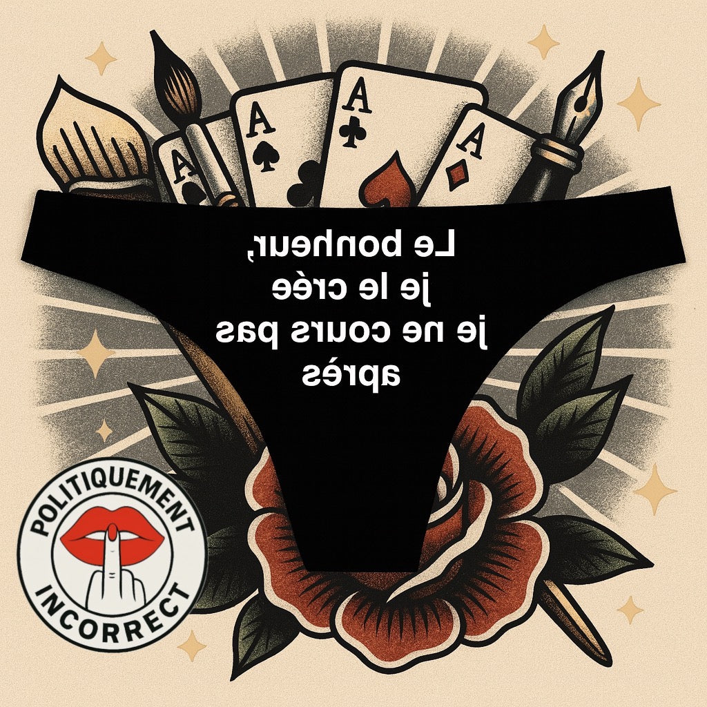 C’est plus qu’une phrase, c’est une déclaration. Elle est inscrite sur ta culotte comme un mantra : provoquer, inspirer et rappeler que tout part de toi.